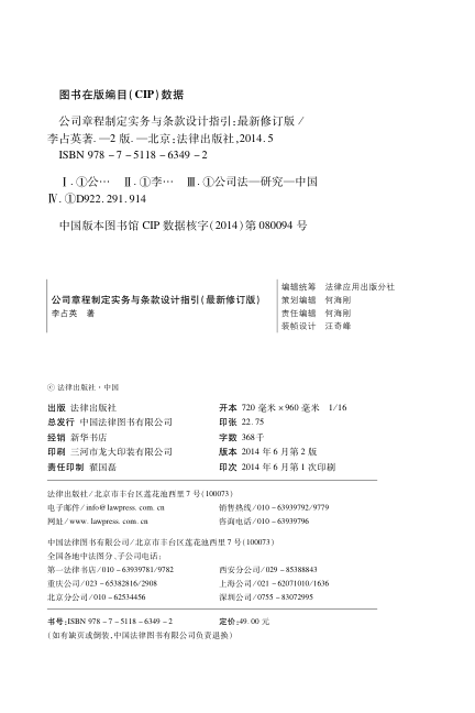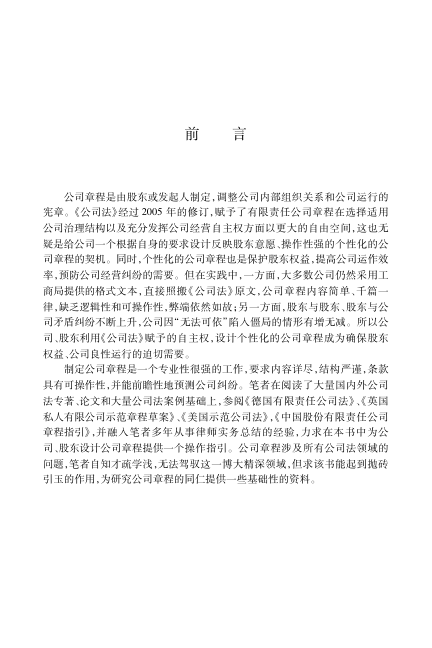 书中不仅阐明章程在保护中小股东权益、防范公司僵局、平衡治理结构中的重要作用,更强调‘程序保障权利’的实操理念,避免条款流于形式。前言与导读部分已清晰展现全书逻辑:从合法性、个性化到稳定性原则,层层递进,兼具理论深度与实务价值。适合公司法务、律师、创业者及企业管理者参考使用。