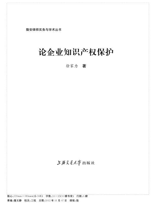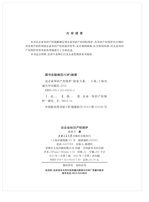 本书由资深律师、知识产权专家徐家力撰写,立足于企业实际需求,系统探讨了从知识产权战略制定到国际保护、价值评估及区域经济发展影响等关键议题。作者融合学术研究与法律实务双重视角,以‘理论+实践’为核心方法,深入剖析企业在知识产权保护中的战略选择、制度设计与诉讼应对策略。