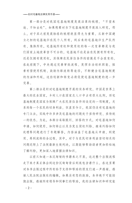 尽管我国尚未出台专门的宅基地立法,本书却填补了实践中的知识空白,语言通俗易懂,兼具专业性与实用性,是农民朋友、基层法律工作者及行政管理人员不可或缺的工具书。