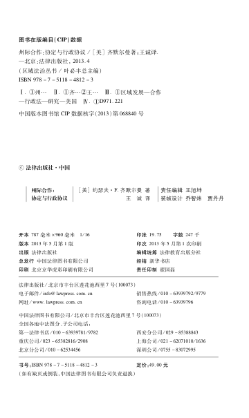 本书聚焦联邦体制下州与州之间的合作机制,系统探讨了美国如何通过州际协定、行政协议和互惠立法等方式化解区域冲突、推动资源共享与政策协同。作者约瑟夫·F. 齐默尔曼以扎实的法律分析,揭示了州际合作在基础设施建设、跨域治理和公共服务提供中的关键作用。书中不仅梳理了宪法框架下的合作工具,还对比了国会先行立法与州际自主协作的利弊,为理解区域法治一体化提供了经典范本。对于关注区域协调发展、行政法实践及跨域治理的读者而言,这是一部不可多得的学术力作。