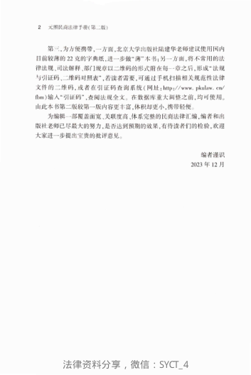 本书由上海财经大学法学院朱晓喆教授主编,是民商法律实务领域广受好评的工具书《元照民商法律手册》的全新修订版。第二版紧扣2024年最新立法动态,全面收录《民法典合同编通则司法解释》《公司法》(2024年修订)等180余部核心法律法规与司法解释,涵盖民事、商事及程序法领域,体系完整、分类清晰。为提升便携性,采用22克超薄字典纸印刷,体积小巧却内容厚重;同时创新引入“法规与引证码”二维码系统,扫码即可获取未全文收录的规范性文件,兼顾轻便与全面。附赠分类标贴,便于快速检索。无论是法官、律师、法务还是法学研究者,皆可从中获得高效实用的条文支持,堪称案头常备之选。
