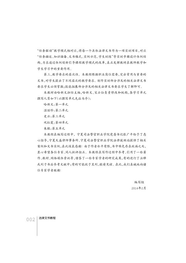 本书由哈新文主编,宁夏人民教育出版社出版,是一本面向法律职业教育的实用性教材。内容聚焦基层常用法律文书的制作,涵盖诉讼文书、笔录、劳动法律文书及司法文书五大模块,体系清晰、重点突出。教程采用“任务驱动”教学模式,通过“任务描述—知识储备—格式示范—实例训练”结构设计,强化实践能力培养,助力学生从理论走向实战。尤其适合法律专业学生、基层法律工作者及实务初学者系统学习文书写作规范与技巧。浅显易懂,针对性强,是提升法律实务能力的优质入门资源。