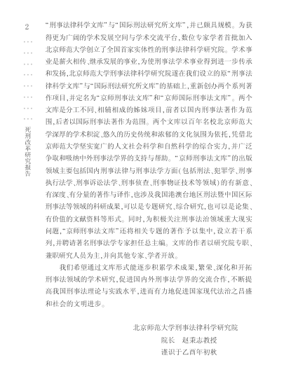 本书是北京师范大学刑事法律科学研究院推出的"京师刑事法文库"系列重要成果之一,系统探讨我国死刑制度的现状、问题与改革路径。基于现代法治精神与人权保障理念,报告从刑法学、刑事政策、司法实践等多维度深入分析死刑适用的合理性与限制机制,并借鉴国际经验提出切实可行的改革建议。作为刑事法治领域的重要学术阵地,该书凝聚了国内顶尖刑法学者的研究智慧,既具理论深度,又回应现实关切,对推动死刑制度改革具有重要参考价值。适合法学研究者、司法实务工作者及关注刑事司法进步的读者阅读。