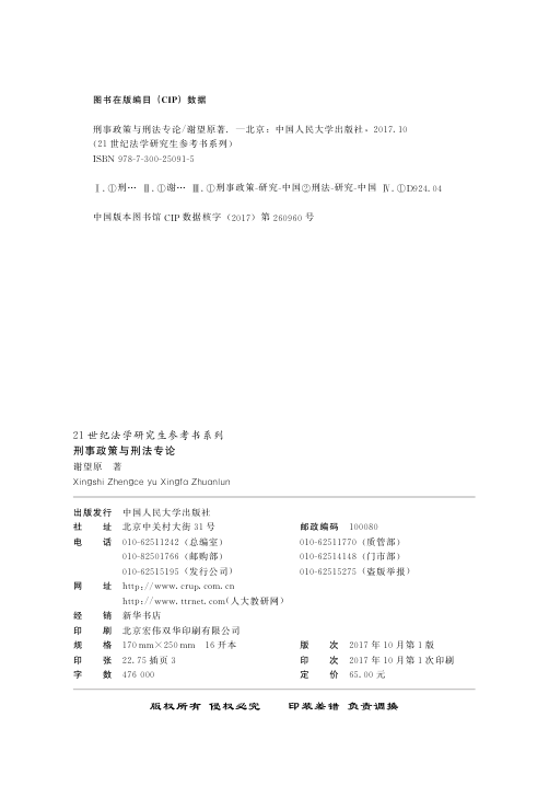 刑事政策与刑法专论(21世纪法学研究生参考书系列)👈点击保存