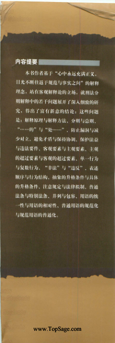 本书是张明楷教授在刑法解释学领域的代表作之一,立足于客观解释论,秉持‘心中永远充满正义,目光不断往返于规范与事实之间’的理念,系统探讨刑法分则中的核心解释难题。内容涵盖解释方法、法益保护、主客观要素、法律拟制与注意规定、特别法条与普通法条关系等关键议题,兼具理论深度与实践洞察。作为21世纪法学研究生重要参考书,本书不仅展现严谨的教义学分析路径,更为司法实务提供有力的论证支持。适合刑法学者、研究生及司法工作者深入研读。