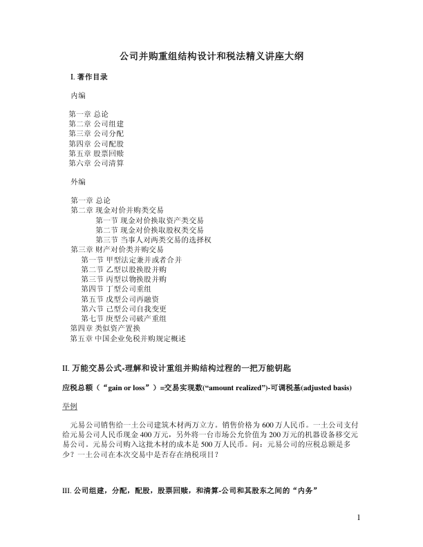 律师实务-公司并购重组结构设计和税法讲义👈点击保存