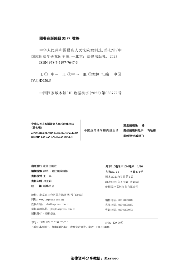 本书由中国应用法学研究所主编,最高人民法院组织编写,系《最高人民法院案例选》系列的第七辑(2023年版),收录了近年来具有典型性、指导性的司法案例。内容涵盖民商事、知识产权、行政与国家赔偿等多个领域,由一线法官和法学专家精心筛选与评析,突出裁判思路与法律适用要点,是法律实务工作者、研究人员及法科学生理解司法实践、把握裁判标准的重要参考资料。全书体例严谨、来源权威,兼具专业性与实用性,适合持续研读与案头查阅。