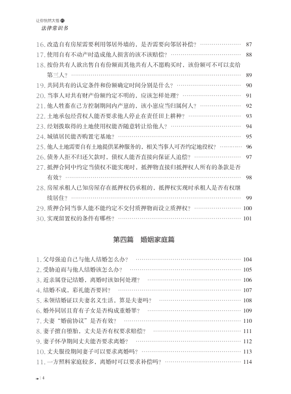 这本书以通俗易懂的方式讲解普通人日常生活中常遇到的法律问题,涵盖民事、合同、物权及婚姻家庭等多个方面。内容结构清晰,分篇编排便于查阅,适合非法律专业人士快速掌握基本法律常识。主编吴景明结合实际案例,帮助读者理解法律条文背后的逻辑与应用,真正实现‘恍然大悟’。无论是签订合同、处理邻里纠纷,还是面对婚姻财产问题,都能从中获得实用指导。作为中国法制出版社出版的权威普及读物,兼具专业性与可读性,是家庭书架上值得收藏的一本法律入门书。
