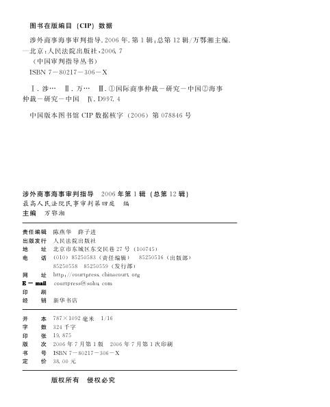 涉外商事海事审判指导-2006年.第1辑(总第12辑)👈点击保存
