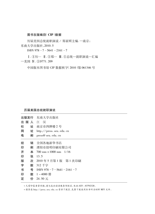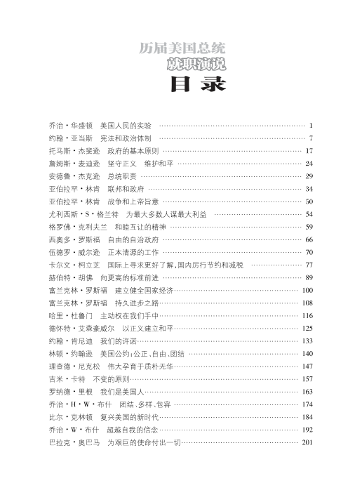 《历届美国总统就职演说》是一本兼具语言学习与人文视野的精品读物。本书收录自华盛顿以来多位美国总统的就职演讲,采用英汉对照排版,辅以背景简介,便于理解历史语境。每篇演说词语言庄重、逻辑严密,不仅是英语表达的典范,更是洞察美国政治理念、社会变迁与国家精神的重要窗口。