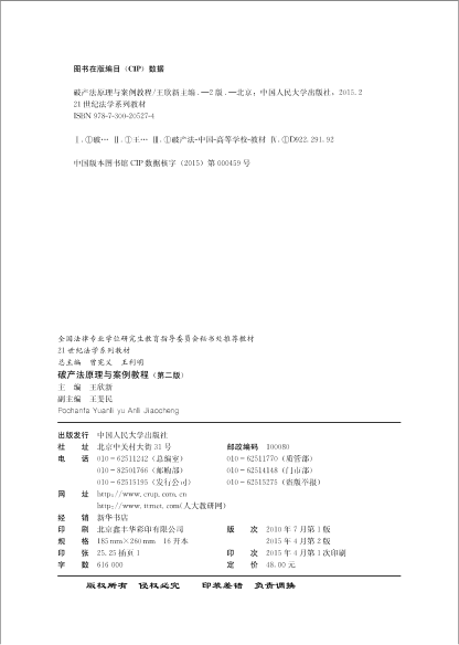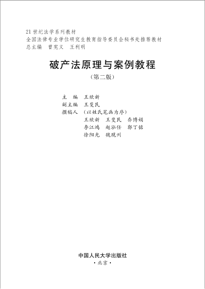 本书为‘21世纪法学系列教材’之一,由全国法律专业学位研究生教育指导委员会推荐,王欣新教授主编,汇聚多位破产法领域专家共同撰写。作为第二版,内容紧跟我国破产法律制度的发展与司法实践演进,系统阐述破产法的基本原理,并结合典型案例深入解析,兼顾理论深度与实务应用。全书结构清晰,适合法学专业学生、法律实务工作者及研究者使用,是理解企业破产、个人债务清理、重整与清算等关键制度的重要参考。书中融合立法背景、学术观点与判例分析,兼具教学适用性与研究价值。