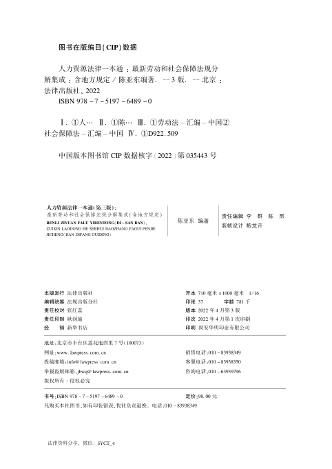 人力资源法律一本通——最新劳动和社会保障法规分解集成(含地方规定)(增订第三版)202204 陈亚东(1)👈点击保存
