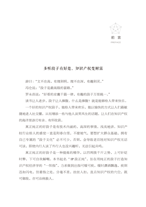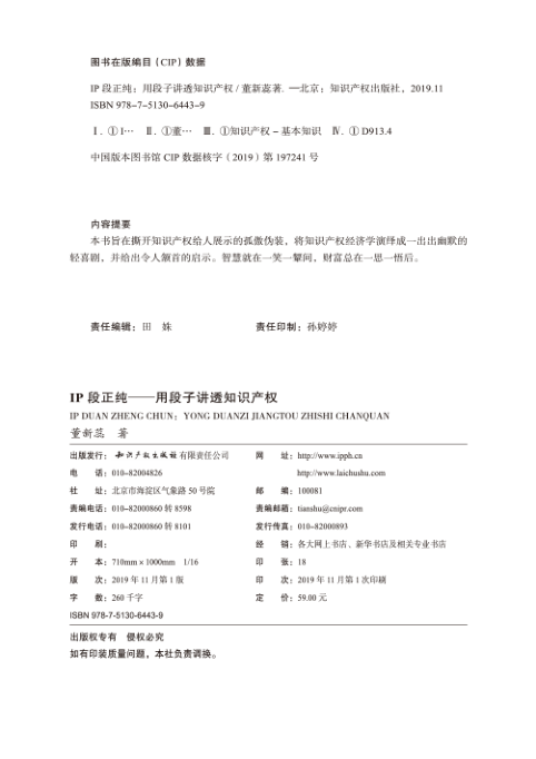 这本书不走寻常路,用段子讲透知识产权的门道。作者董新蕊兼具工学与法学背景,深耕知识产权领域多年,主持参与国家级课题20余项,著有专业书籍20余本。她以幽默笔法撕开知识产权“阳春白雪”的伪装,将复杂的概念化为一个个接地气、有技术内涵的段子,让人在笑声中理解专利运营、维权策略与知识变现的底层逻辑。书中金句频出,既有行业洞察,又不失自嘲与讽刺,真正实现‘四两拨千斤’。适合从业者轻松入门,也适合大众读者拓宽认知。智慧在一笑之间,财富在一思之后。