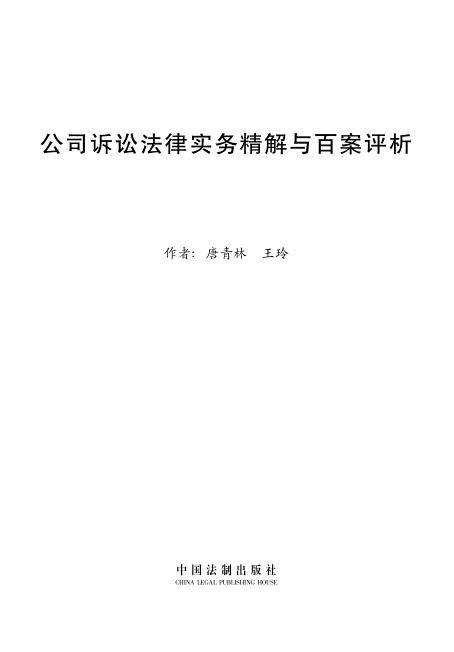 本书由唐青林、王玲主编,中国法制出版社出版,聚焦公司诉讼领域的实际问题,通过对100个真实司法案例的深入剖析,系统梳理股权确认、股东资格、出资责任、公司决议、清算赔偿等高频争议点。内容源自一线实务,紧扣司法实践,不重理论堆砌,而重解决问题,为律师、法务及法官提供可直接参考的操作路径。前言中提出‘身经百战不如研读百案’,正是本书务实风格的最佳写照。适合从事公司法实务工作的法律人士案头常备、随查随用。
