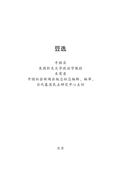 本书由美国杜克大学政治学教授牛铭实与中国社会新闻出版总社总编辑米有录合著,聚焦中国抗日根据地时期独特的‘豆选’选举形式——以投豆子的方式进行民主投票。这一看似简陋却极具创造性的制度,展现了基层民众参与政治的真实可能。书中结合历史文献与田野调查,系统梳理了‘豆选’的运作机制及其社会基础,并深入探讨其对当代中国基层民主建设的启示。从黄土高原到现代乡村治理,作者追问:在复杂国情下,如何走出一条扎根人民的民主之路?这不仅是一部政治制度史研究,更是一次对民主本质的深刻思考。
