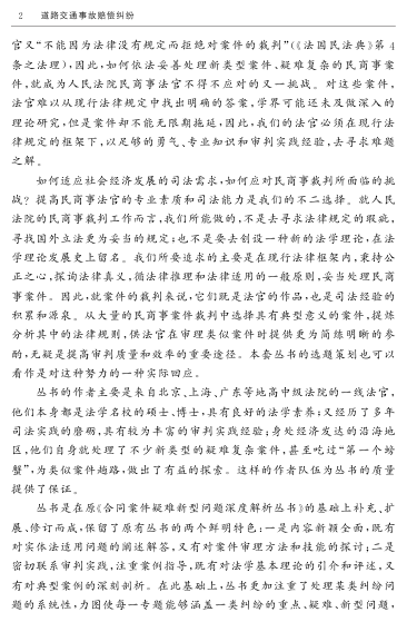 📚这是一本由北京市第二中级人民法院民六庭资深法官团队编写的实务型电子书,聚焦道路交通事故赔偿这一高频、高争议的民事纠纷领域。全书以‘问题—法理—案例—适用’为逻辑主线,系统梳理五章二十个重点难点,涵盖交强险赔付、责任主体认定、赔偿标准计算、事故责任认定等核心环节,并特别依据2009年新颁布的《侵权责任法》进行全面修订与适配。