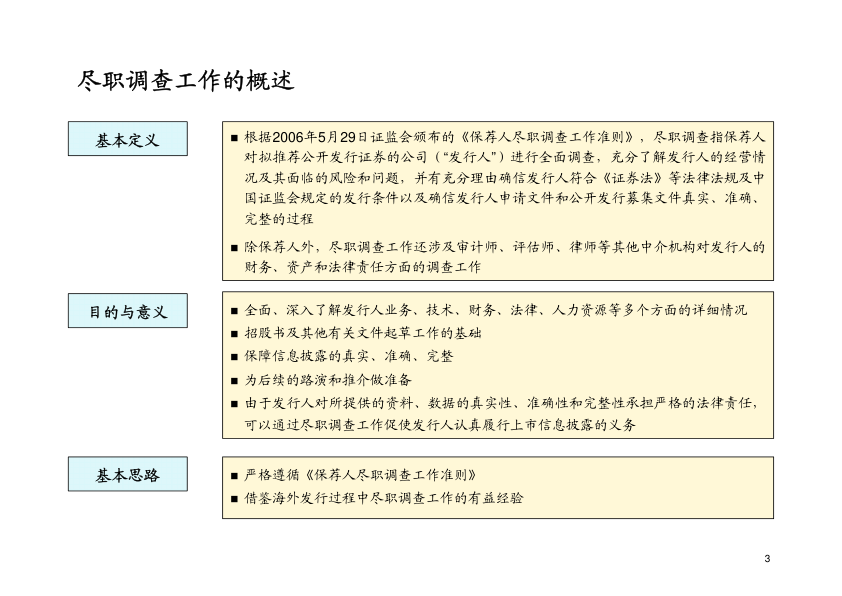 这本由中金公司整理的《中金尽职调查》电子书,紧扣中国证监会《保荐人尽职调查工作准则》(2006年),系统梳理了IPO尽职调查的核心逻辑、方法与实操要点。内容涵盖尽职调查的定义与法律依据、多角色协同机制(保荐人、审计师、律师等)、管理层访谈与第三方核查技巧、财务尽调关键点,以及跟进尽调(Bringdown DD)等动态环节。虽为内部资料风格,但结构清晰、术语规范,适合投行新人、拟上市企业董秘、券商质控及备考CPA/CFA人士快速建立尽调框架认知。附有简明目录与实务导向说明,是理解国内证券发行前端风控逻辑的实用参考。