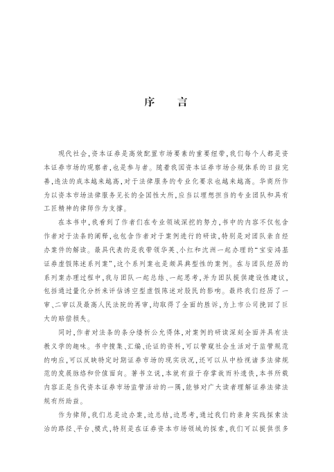 这是一本扎根中国资本市场司法实践的实务指南。三位来自华商律师事务所的资深律师,基于大量亲办案件(如具有标杆意义的‘宝安鸿基证券虚假陈述系列案’),系统梳理证券虚假陈述责任纠纷的立案、举证、损失计算、因果关系认定及抗辩策略等关键环节。书中既有对《证券法》《虚假陈述司法解释》等规则的精准阐释,也有对诱空型虚假陈述量化分析等前沿问题的探索;既呈现裁判逻辑演进,也反思监管与司法的互动现实。不堆砌理论,不回避难点,是青年律师入行进阶、法务风控人员厘清责任边界的务实参考。