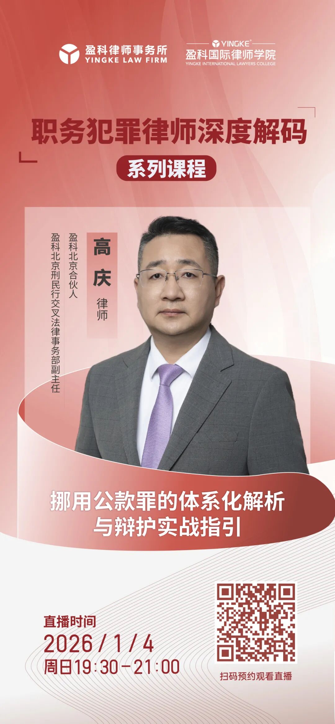 主讲人:高庆,盈科北京刑民行交叉法律事务部副主任、盈科北京合伙人律师