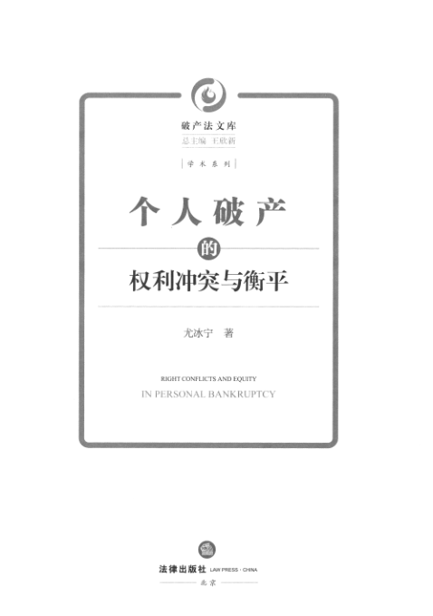 这是一部立足中国语境、兼具理论深度与实践关切的破产法前沿专著。尤冰宁博士以‘权利冲突’为切口,系统剖析个人破产制度构建中债权人、债务人、法院、管理人等多方主体间的权力博弈与价值衡平,回应了深圳等地试点落地后亟待厘清的核心法理难题。作为‘破产法文库·学术系列’重要成果,本书依托扎实的比较法观察与本土案例分析,既延续王欣新教授领衔的破产法研究传统,又直面个人破产入法前的关键争议——如免责边界、诚信审查、程序启动权配置等。文字严谨而不晦涩,适合破产法研究者、司法实务人员及关注营商环境法治化的政策研究者深度阅读。