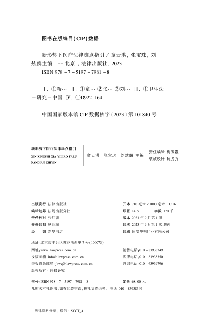 新形势下医疗法律难点指引 202309 童云洪, 张宝珠, 刘炫麟👈点击保存