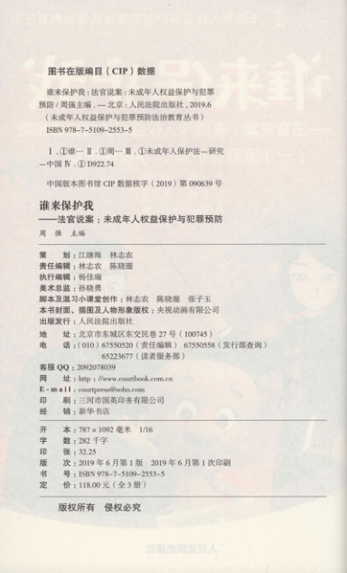这是一本由最高人民法院院长周强主编、一线法官主讲的未成年人法治教育实务读本,系《未成年人权益保护与犯罪预防法治教育丛书》第一册。全书以真实司法案例为切入点,聚焦家庭保护与学校保护两大核心场景,用通俗语言解析监护责任、校园欺凌、性侵害防范、教育惩戒边界等热点问题,并配有‘温习小课堂’强化理解。内容兼具权威性与可读性,既适合中小学教师、家长开展普法教育,也为法律从业者提供基层实践参考。开本适中、插图生动(央视动画有限公司授权),是少有的兼顾专业深度与传播温度的未成年人保护工具书。