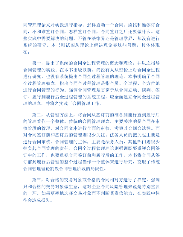 尤为可贵的是,书中对‘合格交易对象’的资信评估标准、合同启动前置机制、跨部门协同责任划分等细节均有扎实提炼——这些内容在法学院学不到,在通用管理教材里也难觅踪影。适合企业法务、合规负责人、业务部门管理者及MBA/EMBA学员作为案头工具书反复参阅。
