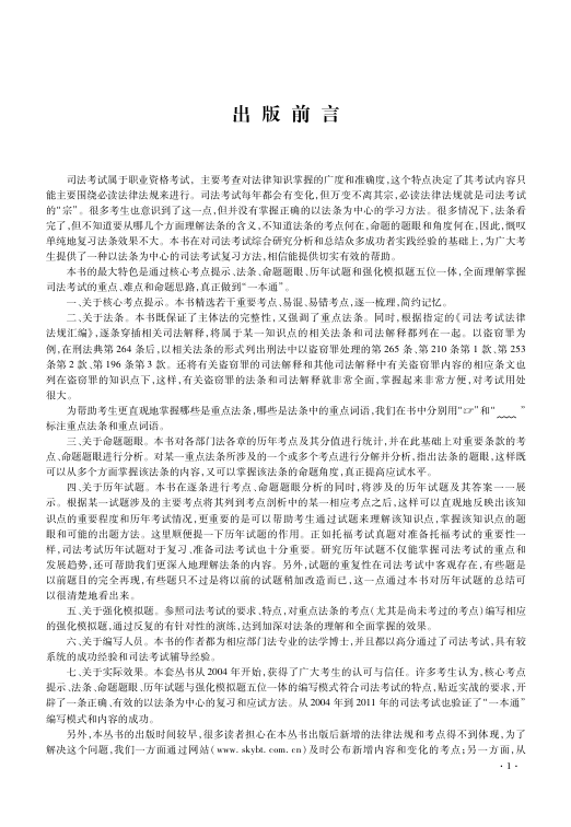 全书紧扣考试大纲,以‘五位一体’结构展开:核心考点提示 + 原文法条 + 命题题眼分析 + 历年真题 + 强化模拟题。尤其注重法条整合——将主法条、关联条款与司法解释按知识点归集(如盗窃罪下集中列示刑法典及多个相关条文与解释),并用符号标注重点法条与关键词,极大提升复习效率。