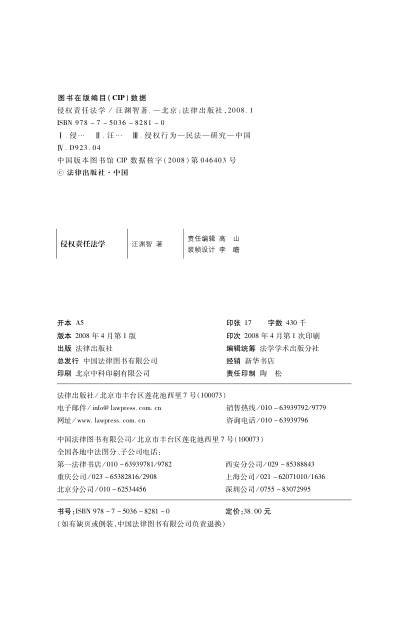 这是一部体系严谨、理论扎实的侵权责任法专著,由山西大学法学院汪渊智教授撰写,法律出版社2008年出版。全书立足中国民法语境,系统梳理侵权责任的构成要件、归责原则、免责事由、特殊侵权类型及损害赔偿规则,兼顾立法演进与司法实践,兼具学术深度与教学适用性。虽成书较早,但其对过错责任、无过错责任、公平责任等基础理论的辨析仍具启发意义,适合作为法学本科生高年级课程参考书或考研、司法考试中侵权法模块的延伸读物。纸本印刷清晰,A5开本便于研读批注。