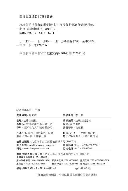 📖 2015年施行的新《环境保护法》是我国环境法治的里程碑,理念更新、制度突破、责任加严。本书由环境保护部政策法规司直接参与修法的专家团队编写,逐条解析法条主旨、立法背景、适用要点及关联规定,兼具专业性与实操性。