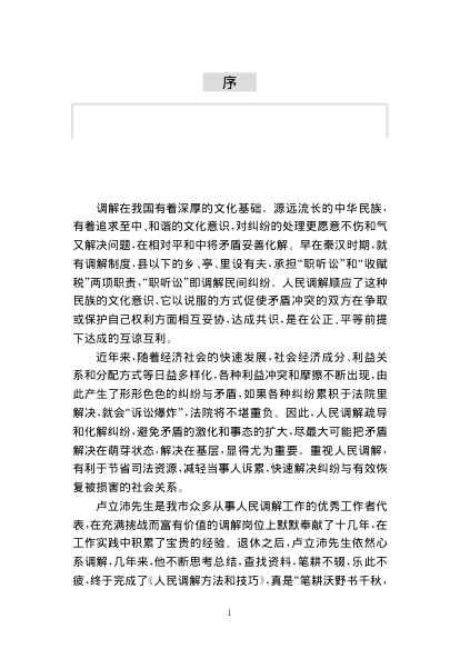 这是一本扎根实践、面向一线的人民调解实务手册。作者卢立沛老师深耕调解工作十余年,退休后仍笔耕不辍,将多年经验凝练成书。全书摒弃空泛理论,以‘解决问题’为出发点:前半部分探讨调解与语言艺术、时间节奏、人脉资源、基础医学常识等跨界关联,策略鲜活、案例生动;后半部分聚焦婚姻、继承、赡养、相邻关系、工伤事故等高频纠纷类型,逐类解析调解切入点、话术技巧与破局路径。行文平实亲切,穿插典故趣闻,兼具可读性与操作性。适合作为社区工作者、司法所人员、人民调解员及法学实务学习者的案头参考。