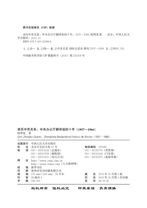 亲历中苏关系:中央办公厅翻译组的十年:1957~1966👈点击保存