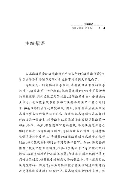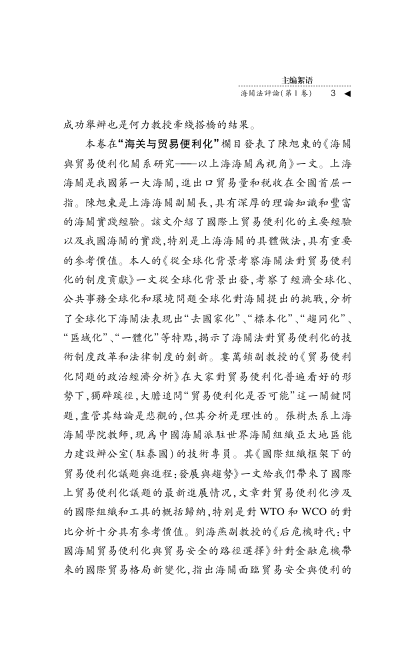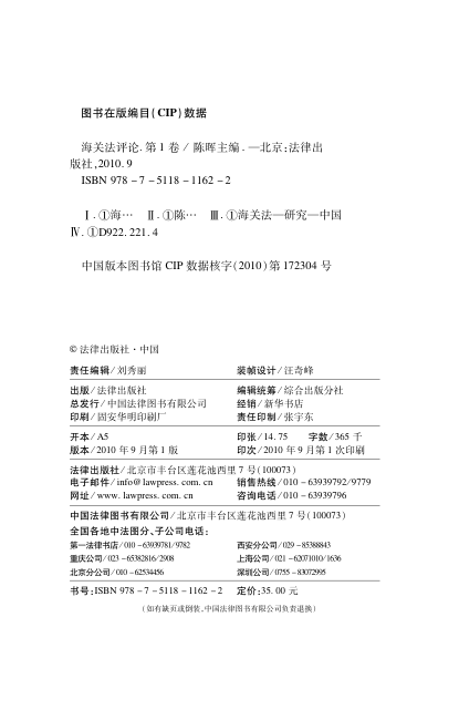 📚《海关法评论.第1卷》是由上海海关学院海关法研究中心主办、陈晖教授主编的学术辑刊,获教育部、财政部高校特色专业建设点资助。作为国内首部聚焦海关法学的连续出版物,本卷以2010年‘多边贸易体制:贸易便利化与海关’专题论坛成果为基础,汇集陈旭东(上海海关副关长)、何力、张乃根、娄万锁、张树杰等30余位学界与实务界专家的深度论文。