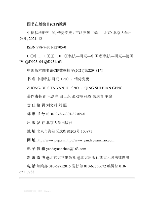 中德私法研究(20):情势变更 202112 王洪亮,田士永,张双根,张谷,朱庆育👈点击保存