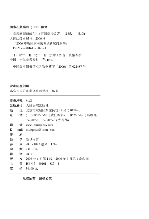 📚 这本由北京万国学校编著、人民法院出版社出版的《新版常考问题例解》(第二版),是2006年司法考试备考的经典工具书之一。全书紧扣近4届司考试题(2002–2005),系统梳理出约160个高频法律制度考点,覆盖总分值600分中的420分以上(超70%),堪称‘重点内容提纯手册’。