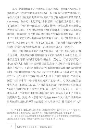 书中既有古罗马皇帝对律师战士身份的礼赞,也有柏拉图对职业异化的冷峻警示;既回溯中西律师制度迥异的历史命运,也直面中国律师‘蒙难年’等现实困境。它不回避矛盾,而是在尊敬与蔑视、崇高与污名的张力之间,锚定律师作为‘法律捍卫者、权利宣传者、冲突协调者’的多重社会定位。