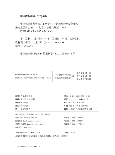 📖《中国税务律师评论(第9卷)202212》由中华全国律师协会财税法专业委员会主编,是目前国内唯一连续出版的税法实务类专业出版物。本卷紧扣‘十四五’规划中优化税制结构、推进房地产税立法、深化智慧税务建设等重大议题,收录来自一线税务律师的深度实务文章,涵盖税收征管现代化、‘三假’案件应对、纳税人权益救济、跨行业税务合规策略等前沿方向。尤为可贵的是,书中强调税务律师需从‘税法专家’升级为‘行业+税法’复合型人才,并系统梳理其在立法建言、执法协调、争议解决及政策倡导中的四重角色。适合税务律师、企业财税负责人、税务师及税法研究者案头参考。