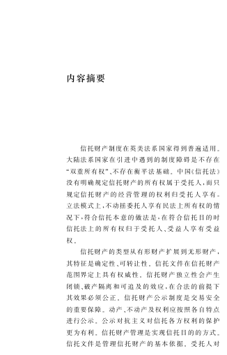这本《信托财产法律问题研究》虽仅见内容摘要与目录起始页,但已清晰勾勒出其学术重心:深入探讨信托财产的法律属性与治理逻辑。书中强调受托人对信托财产须履行谨慎投资、忠实义务及亲自管理、分别管理等法定义务;更进一步指出,信托财产在实践中展现出显著的自治性与渐趋成型的实体性,并正朝向商业化、专业化的营业信托方向演进。对于法学研究者、信托从业人士及金融监管相关工作者而言,本书是理解我国信托财产制度底层逻辑与发展趋势的重要参考。篇幅精炼,观点凝练,适合系统梳理信托法核心议题。