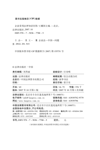 这本由王耀国主编、法律出版社2007年出版的《企业常用法律知识问答》,是航天集团公司为落实‘五五’普法规划组织编写的实务型普法教材。全书采用问答体例,聚焦企业日常运营中最常见、最紧迫的法律问题,涵盖企业治理、合同管理、劳动用工、国有资产保护、法律风险防范等核心领域。内容立足法学理论高度,更紧密结合军工企业转型期的实际需求——如多元投资主体下的权责界定、国内外市场竞争中的合规应对、依法决策与制度化风控机制建设等。语言通俗清晰,分析有据,兼具权威性与可操作性,特别适合国企管理者、法务人员及基层干部系统学习与案头参考。