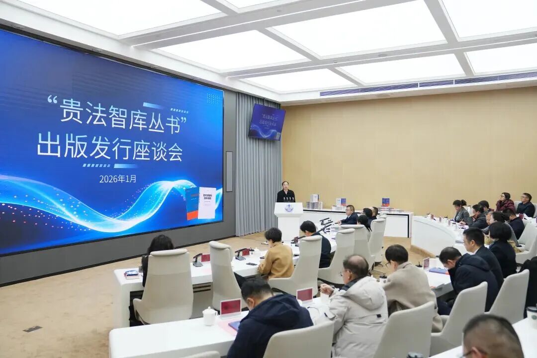 1月20日下午,“贵法智库丛书”出版发行座谈会在贵州省高级人民法院数字中心隆重举行。贵州省高级人民法院党组书记、院长茆荣华出席座谈会并作讲话强调,这套丛书是贵州法院坚守“公正与效率”根本要求、积极服务中国式现代化贵州实践的生动答卷。