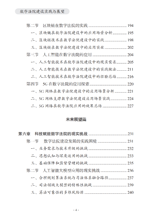本书基于 贵州法院 在最高人民法院统一部署下,依托贵州作为国家大数据综合试验区的战略优势, 探索形成的“1+4+1”数字法院建设模式 ,即以发展规划为方位点,以 “大练兵、大比武、大培训、大服务” 为着力点,以应用评估体系为落脚点,全力推进机制、措施、协同与科技创新。围绕 “全业务平台通办、全方位数字变革、全流程数助赋能、全领域资源整合” 的四维架构,系统总结贵州在提升审判质量、优化司法服务、整合司法资源等方面的实践成效。