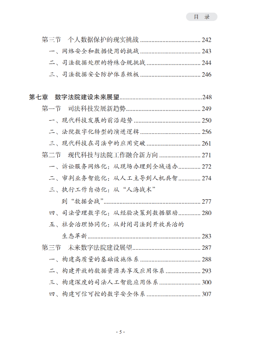 在全面建设社会主义现代化强国、实现第二个百年奋斗目标的关键时期,数字法院建设迎来千载难逢的发展良机。2025年10月23日,中国共产党第二十届中央委员会第四次全体会议通过的《中共中央关于制定国民经济和社会发展第十五个五年规划的建议》,明确“十五五”经济社会发展七个方面主要目标,为加快高水平科技自立自强,引领发展新质生产力从四个方面作出部署:一是加强原始创新和关键核心技术攻关;二是推动科技创新和产业创新深度融合;三是一体推进教育科技人才发展;四是深入推进数字中国建设。数字法院建设是数字中国建设的重要组成部分。贵州法院把握时代脉搏,梳理总结当前数字法院建设实践,组织编写了《数字法院建设实践与展望》,旨在落实党中央决策和最高人民法院关于数字法院建设的工作部署,在更高起点上全面深化贵州数字法院建设,为全国法院提供可复制、可借鉴的蓝本。本书分为理论概述、实践创新、未来展望三大篇章共七个具体章节,对为什么开展数字法院建设、如何推进数字法院建设与数字法院建设的未来走向进行剖析论述。其目标是通过理论研究探索数字法院建设高质量发展路径,紧跟数字化发展的新趋势、新技术、新浪潮,坚持系统思维、整体理念,依托“全国法院办案办公平台”底座能力深入拓展数字技术司法应用场景,遵循“业务数据化、数据业务化”路线,加强系统设计、整体设计,一体化推进数字法院融合创新、迭代升级,着力打造中国特色、世界领先的数字法院样板,以数智化撬动“司法生产力”,为审判工作现代化提供更加坚强的科技支撑。