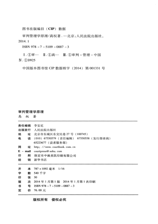 📖 本书由黑龙江省高院审管办主任、审判业务专家高权博士撰写,立足中国司法实践,融合法学、管理学与司法改革前沿视角,构建了具有本土适应性的审判管理学理论框架。全书以‘原理’为纲,涵盖审判管理的内涵外延、价值目标、运行机制、质量评估与信息化支撑等核心议题,既有扎实的学理推演,又深度呼应法院审限监管、质效考核、流程再造等现实需求。作者兼具检察、审判、高校与科研多重履历,确保内容兼具权威性、实操性与前瞻性。作为《黑龙江审判管理文库》开篇之作,本书填补了审判管理领域系统性基础理论著作的空白,是法官、审管人员、司法研究者及法学师生理解‘司法如何被科学管理’的重要参考。