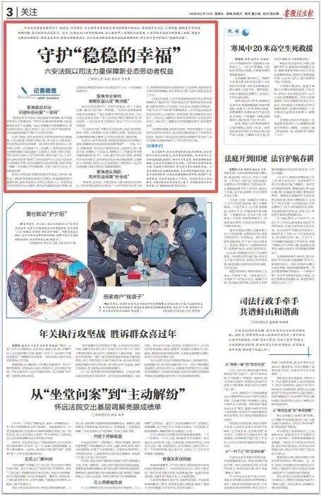 走访过程中,新业态劳动者维权成功的释然、企业明晰用工规范后的笃定,让记者深受触动。新业态用工灵活却也暗藏权益隐患,劳动关系界定难、劳动者维权路径模糊,是采访中发现的突出问题。守护新业态劳动者的幸福,不能固守传统模式,需司法力量主动适配变化。六安法院联动共治破维权困境、专业审判明裁判尺度、源头普法筑保障防线,用精准举措破解新型难题,既保护了劳动者权益,也为企业发展立了规范。司法的力度与温度兼具,才能让新业态劳动者安心奋斗,实现劳动者与企业的共赢,让“稳稳的幸福”落到实处。