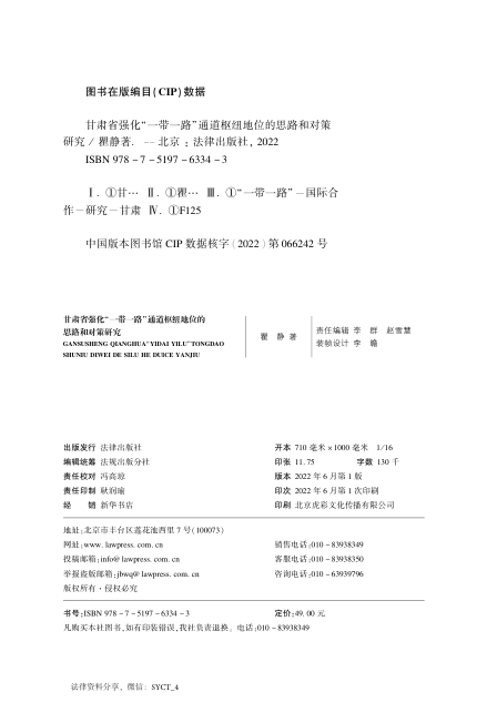 📖 这是一本立足国家战略、深耕省域实践的扎实研究成果。瞿静博士以甘肃省作为‘丝绸之路经济带黄金段’的核心定位为切入点,系统梳理其在‘一带一路’互联互通格局中的枢纽功能,既回应了习近平总书记强调的‘互联互通是共建主线’这一顶层设计,又填补了当前宏观研究多、省域落地研究少的学术空白。