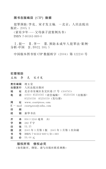 这本由李克、宋才发主编,人民法院出版社出版的《犯罪预防》,是‘家有少年—父母孩子读案例丛书’的重要分册。全书立足未成年人保护与犯罪预防双重维度,以真实司法案例为载体,融合法律解读、教育引导与社会分析,聚焦家庭、学校、司法机关协同育人的实践路径。序言中强调‘未成年人是党和国家的希望’,凸显其战略高度;内容紧扣《预防未成年人犯罪法》,覆盖思想道德建设、不良行为干预、网络环境影响等现实议题,兼具政策性、实务性与可读性。适合教育工作者、司法从业者、家长及青少年法治教育研究者参考使用。