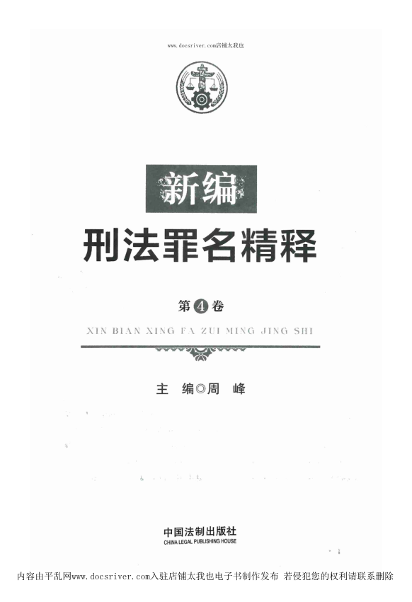 📚 本册为《新编刑法罪名精释》系列第4卷,由资深刑法学者周峰主编,由中国法制出版社出版。全书延续严谨务实风格,聚焦刑法分则重点罪名,系统梳理‘法律规定—罪名构成—实务疑难—情节认定—量刑规则—法律链接’六维解析路径。虽内容片段仅含封面与目录信息,但结合丛书定位可知,本书面向法官、检察官、律师及法学研究者,注重理论与司法实践深度结合,是办理刑事案件、研习罪名适用不可多得的工具型参考书。