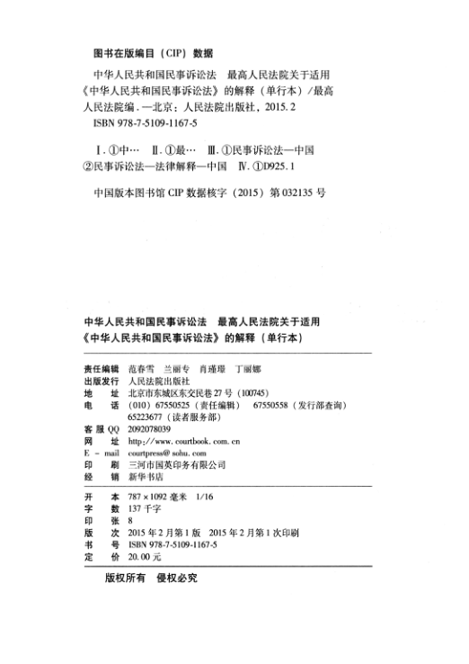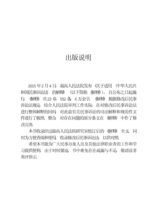 📚 这是一本由人民法院出版社出版的权威法律实务工具书——《民诉解释单行本》,收录2015年2月4日最高人民法院发布的《关于适用〈中华人民共和国民事诉讼法〉的解释》全文(共23章552条),并附修改后的《民事诉讼法》原文,便于对照理解与适用。