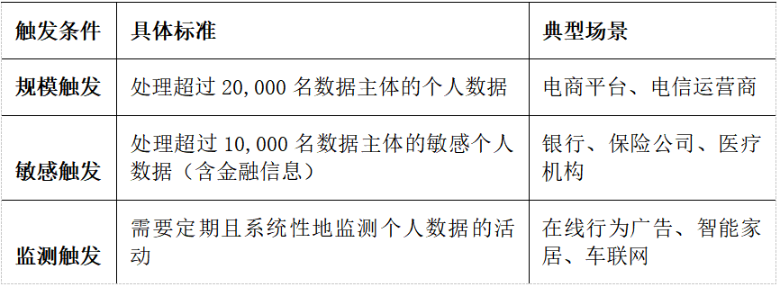 首先,PDP明确了DPO的 强制任命门槛 ,自2025年6月1日起,符合以下任一条件的组织必须任命DPO:
