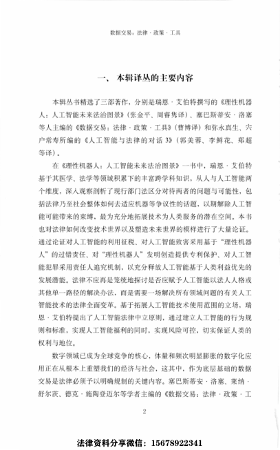 本书是‘独角兽法学精品·人工智能’系列第四辑的重要组成部分,聚焦数字经济背景下数据交易的法律、政策与工具创新。作为第三届明斯特欧盟法与数字经济研讨会的论文集,书中汇集了欧盟在数据交易领域的前沿研究成果,系统探讨了知识产权、财产权、合同法、强制许可等工具在数据流通中的适用可能。尤其深入剖析了数据“所有权”的归属争议、B2B交易中不公平格式条款的规制,以及《通用数据保护条例》《数据库指令》等关键立法的实践影响。从法律、经济、产业多维视角出发,本书为构建安全、公平、高效的数据交易体系提供了扎实的理论支撑与政策建议,是法学研究者、政策制定者及数字企业实务人士理解欧洲数据经济治理逻辑的重要参考。